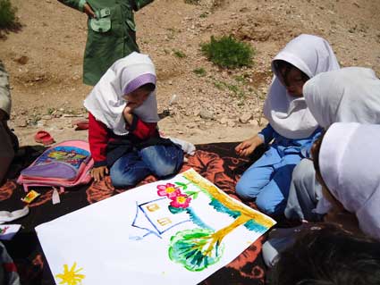 در هجدهم اردیبهشت با بچه های کلاس چهارم و پنجم ایثار(روستای فایندر) به دیدار بچه های دبستان آرمان (یکی از کوچکترین مدارس دنیا با 9 دانش آموز )واقع در چاه شور رفتیم.